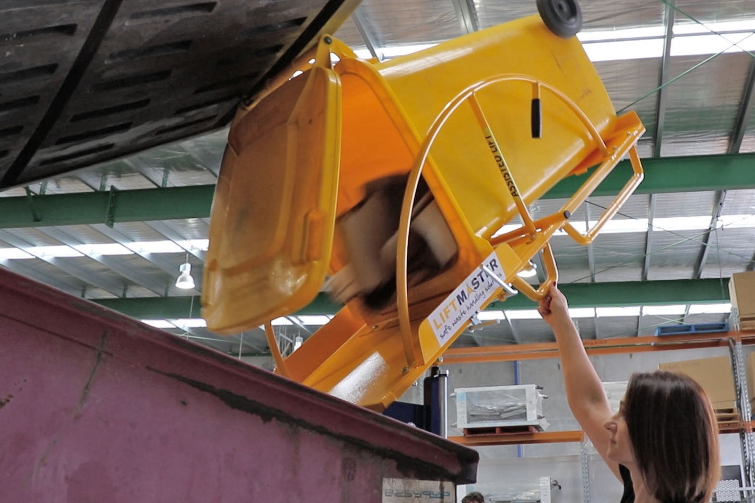 The Liftmaster Niftylift bin lifter and tipper is a manually operated bin lifter and tipper that aids in the lifting and tipping of wheelie bins, weighing up to 30 kg, into skip bins.