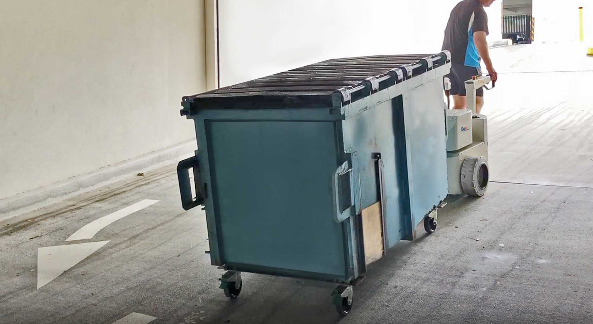 Tow bins on steep ramps: Engineered to move large mobile waste bins up to a 15° incline.